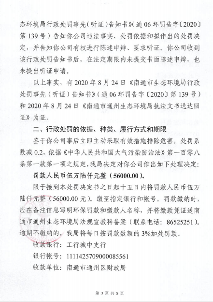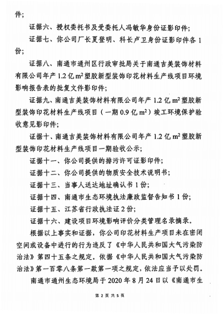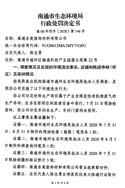 通06环罚字〔2020〕第146号 南通吉美装饰材料有限公司