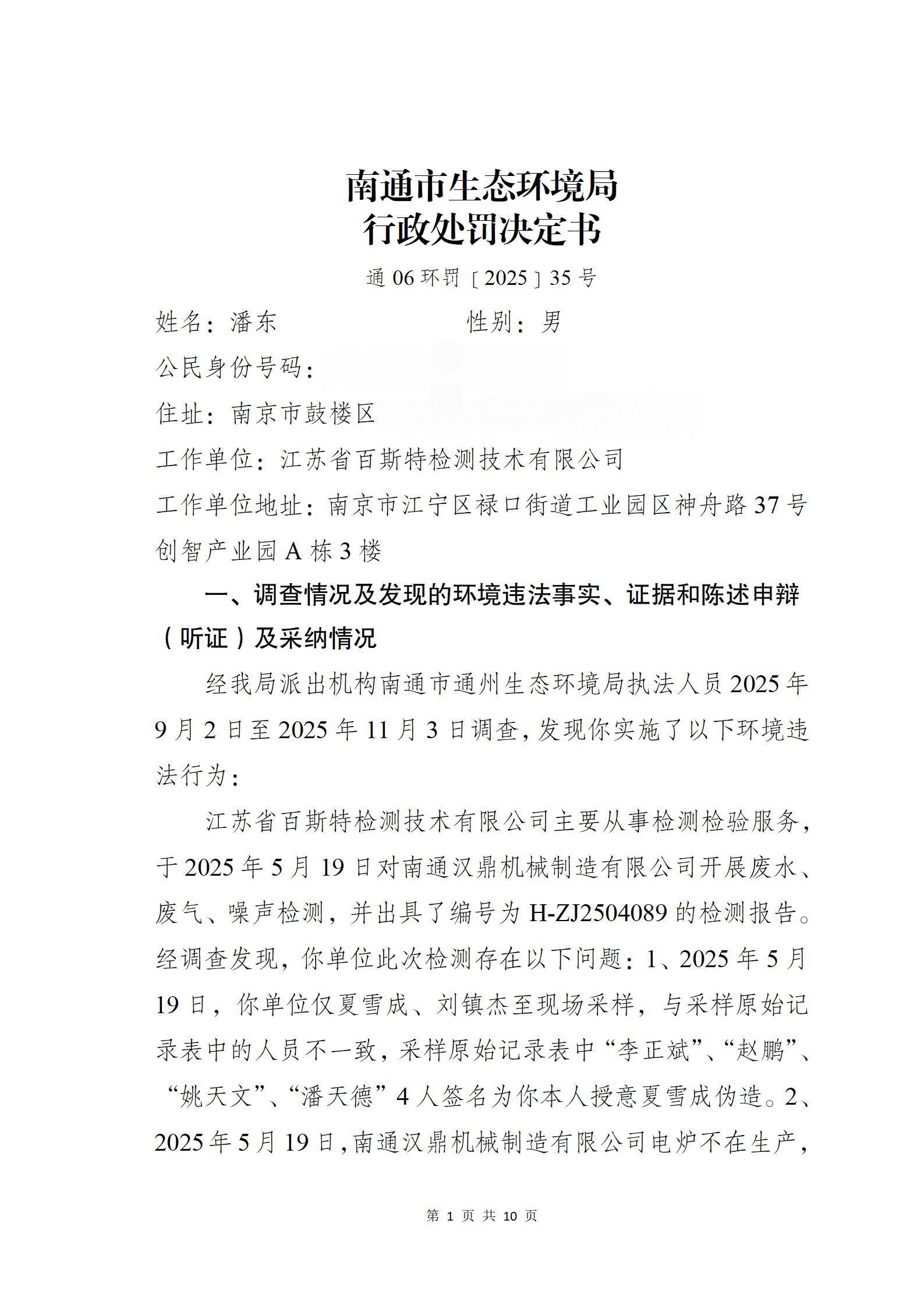 通06环罚〔2025〕35号 潘东